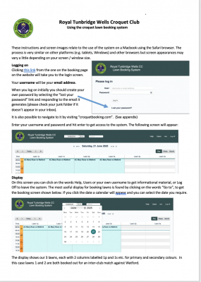 - You will only be able to book lawns up to 2 weeks in advance. If you need to book further ahead (e.g. for competition doubles) please contact lawnbooking@tunbridgewellscroquet.org.uk